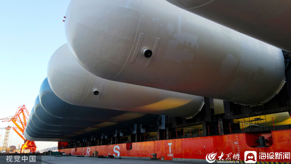 2022年11月2日,山东威海,石岛重工有限公司为非洲安哥拉制造的大型石油液化气储罐,首批在荣成市石岛港正式启运,将通过海运运往非洲国家。  据了解,这些被称为超大“子弹罐”的“巨无霸”,每台直径8米…